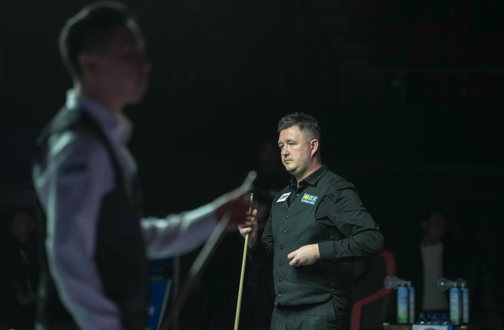 英格蘭選手凱倫·威爾遜(右)在2025拉薩冬季高原斯諾克挑戰(zhàn)賽比賽中。新華社記者 晉美多吉 攝