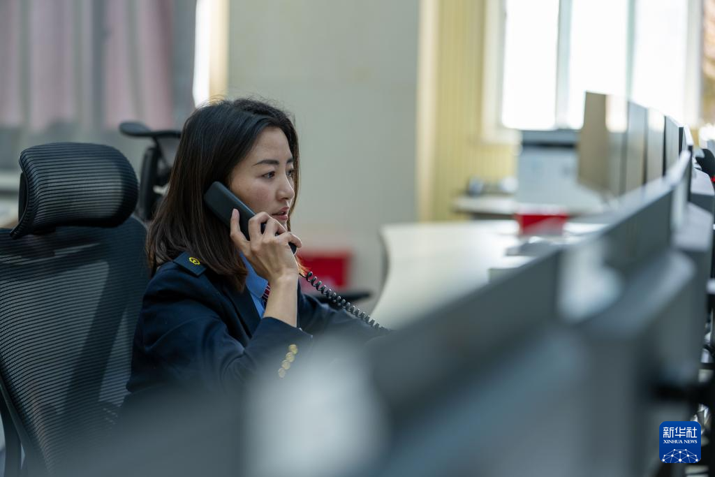 1月6日,拉薩基礎(chǔ)設(shè)施段安全生產(chǎn)指揮中心調(diào)度計劃監(jiān)控組擁吉正在接聽現(xiàn)場車間電話。新華社記者 旦增尼瑪曲珠 攝