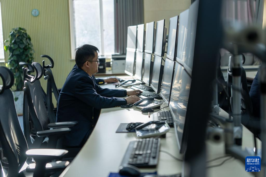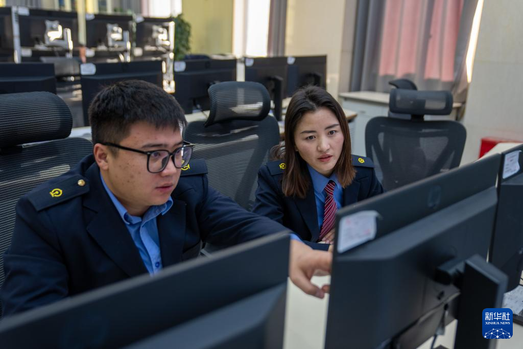 1月6日,拉薩基礎(chǔ)設(shè)施段安全生產(chǎn)指揮中心人員正在進行視頻盯控、集中監(jiān)測。新華社記者 旦增尼瑪曲珠 攝