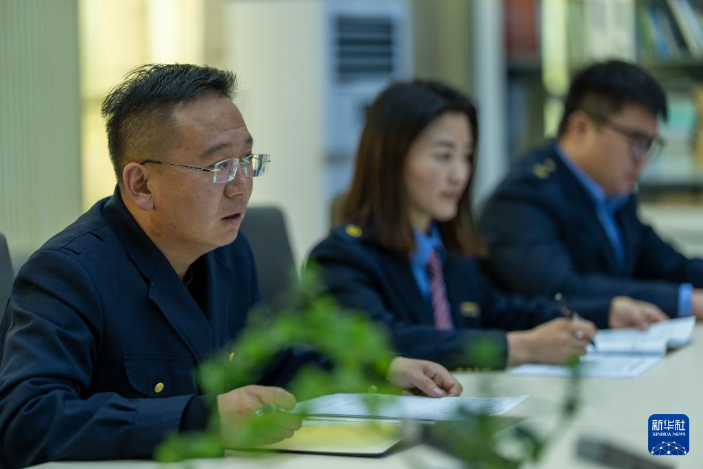 1月6日,拉薩基礎(chǔ)設(shè)施段安全生產(chǎn)指揮中心主任王義虎(左1),正在對當(dāng)日重點工作進行重點提示。新華社記者 旦增尼瑪曲珠 攝