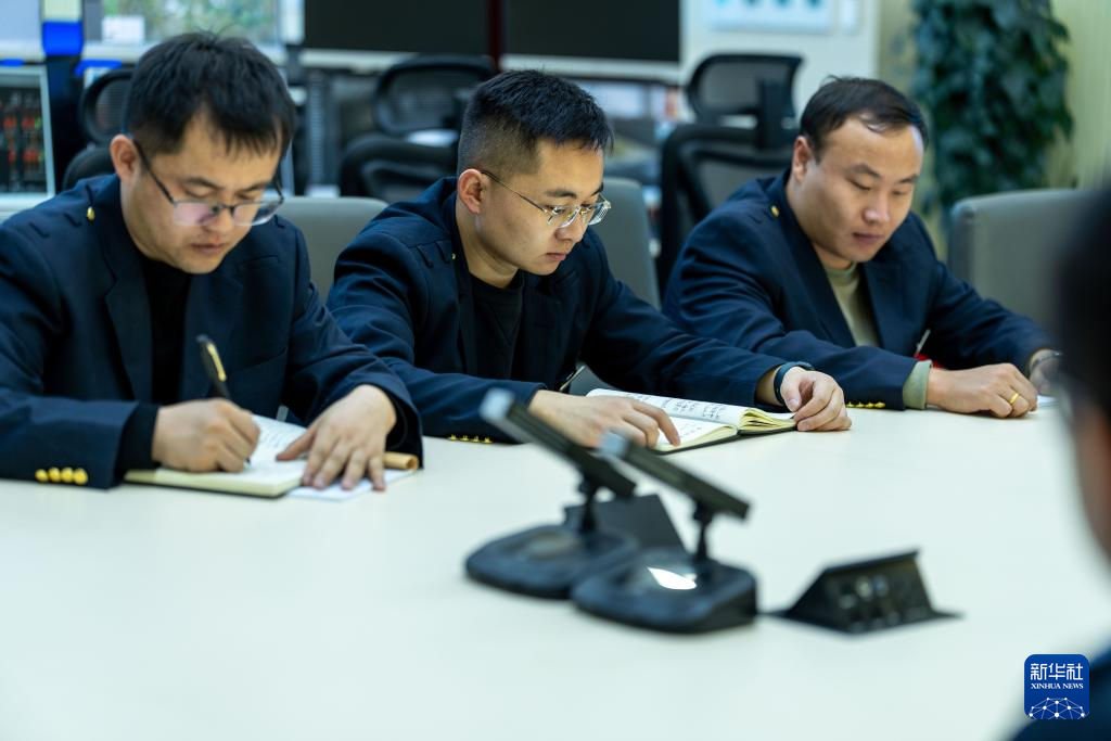 1月6日,拉薩基礎(chǔ)設(shè)施段安全生產(chǎn)指揮中心電力調(diào)度員祁增海(左)、日常調(diào)度員赫占榮(中)、電力調(diào)度員趙忠林(右)進行業(yè)務(wù)學(xué)習(xí)。新華社記者 旦增尼瑪曲珠 攝