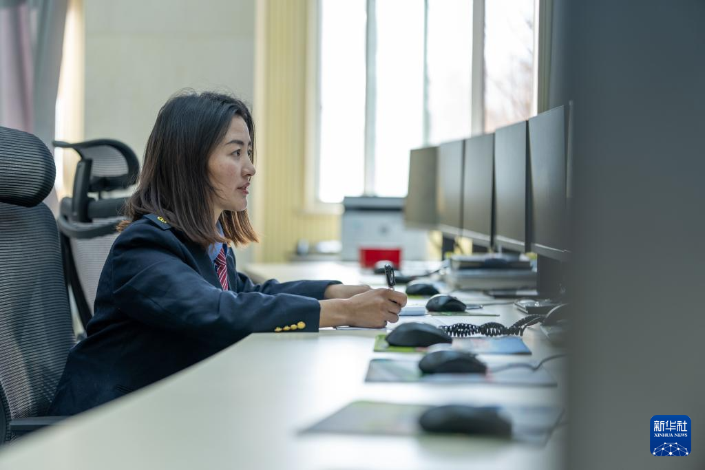 1月6日,拉薩基礎(chǔ)設(shè)施段安全生產(chǎn)指揮中心調(diào)度計劃監(jiān)控組擁吉正在調(diào)閱監(jiān)測數(shù)據(jù)。新華社記者 旦增尼瑪曲珠 攝