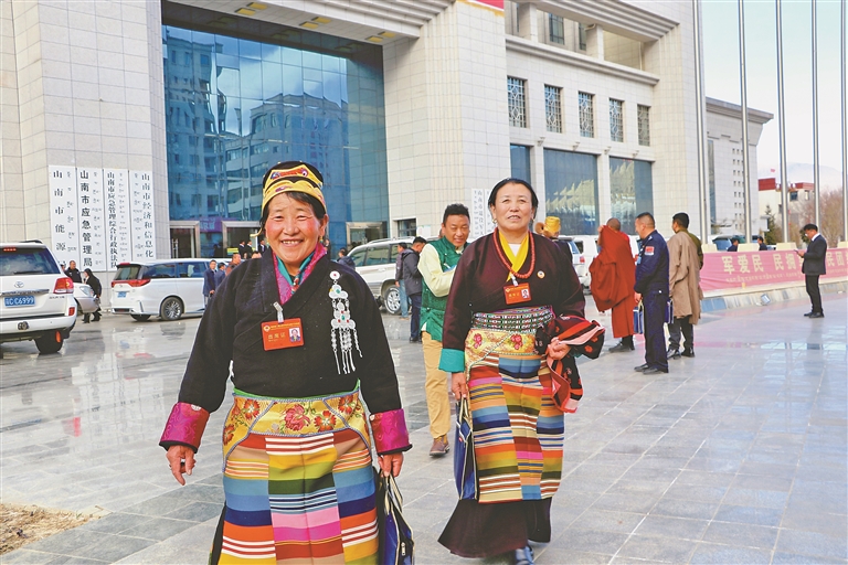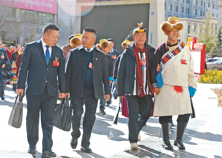 圖為山南市政協(xié)委員步入會(huì)場(chǎng)。