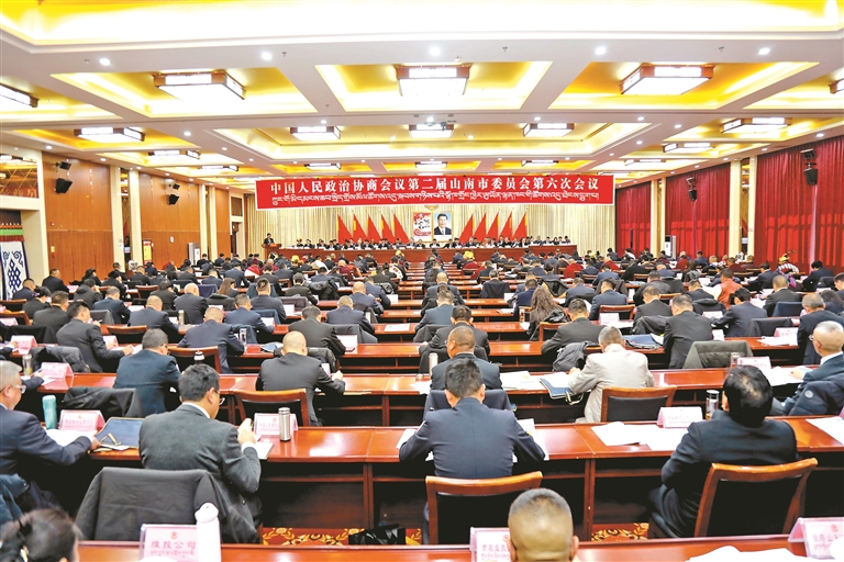 圖為山南市政協(xié)委員在聆聽(tīng)政協(xié)工作報(bào)告。