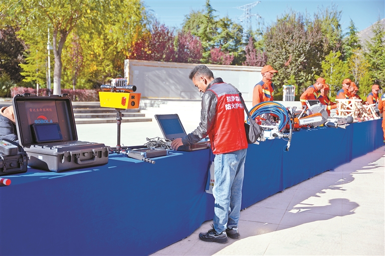 圖為宣傳員現(xiàn)場展示各類裝備的操作方法。記者 余書冉 攝