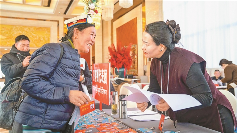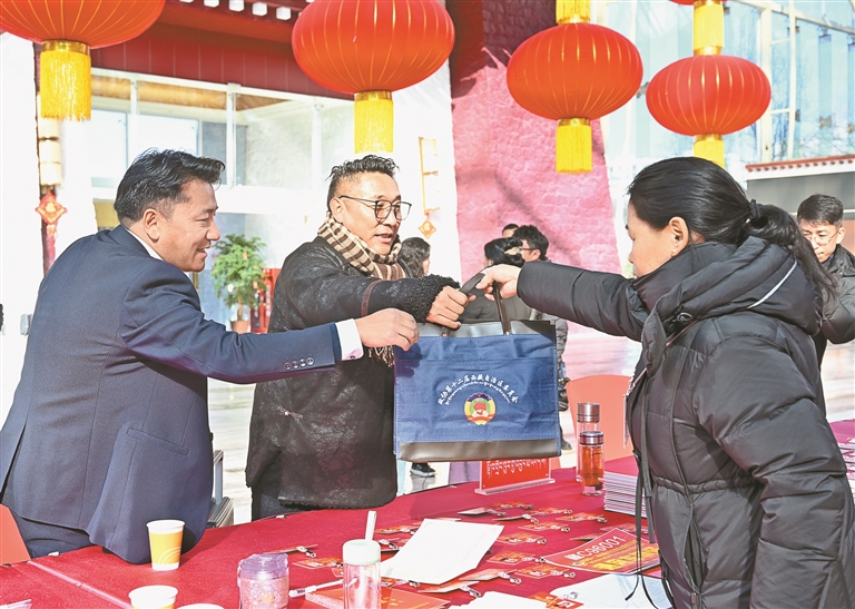 “這是您的會(huì)議資料,請(qǐng)拿好。”拉薩飯店報(bào)到處,在工作人員引導(dǎo)下,代表們依次簽到。