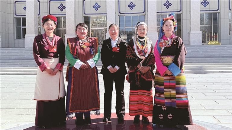 益西(左二)與女性代表委員們合影。