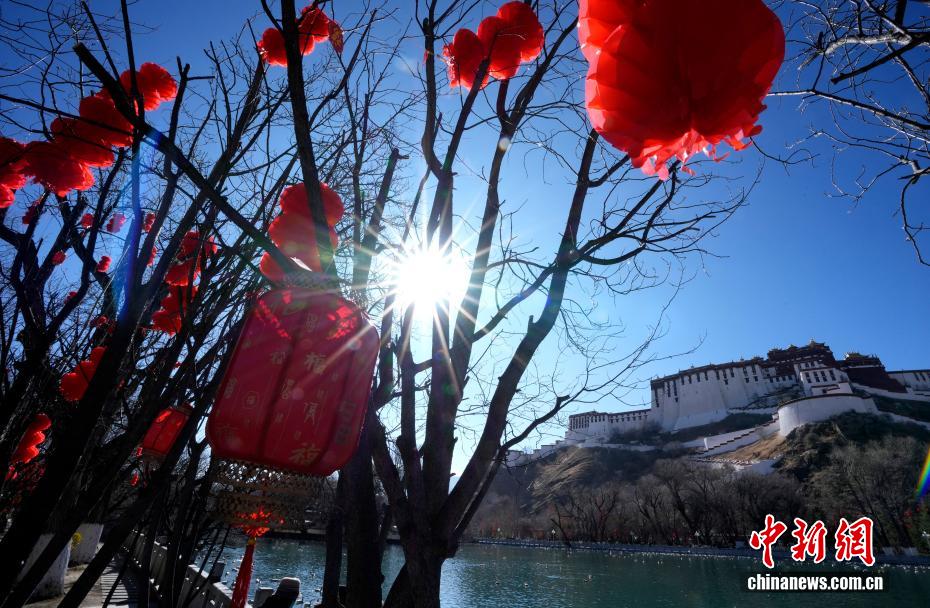 2月3日,西藏拉薩布達(dá)拉宮腳下的宗角祿康公園,紅燈籠裝點(diǎn)節(jié)日氛圍。隨著春節(jié)、藏歷新年的臨近,拉薩城區(qū)大街小巷被精心裝點(diǎn),年味愈發(fā)濃郁。中新社記者 李林 攝