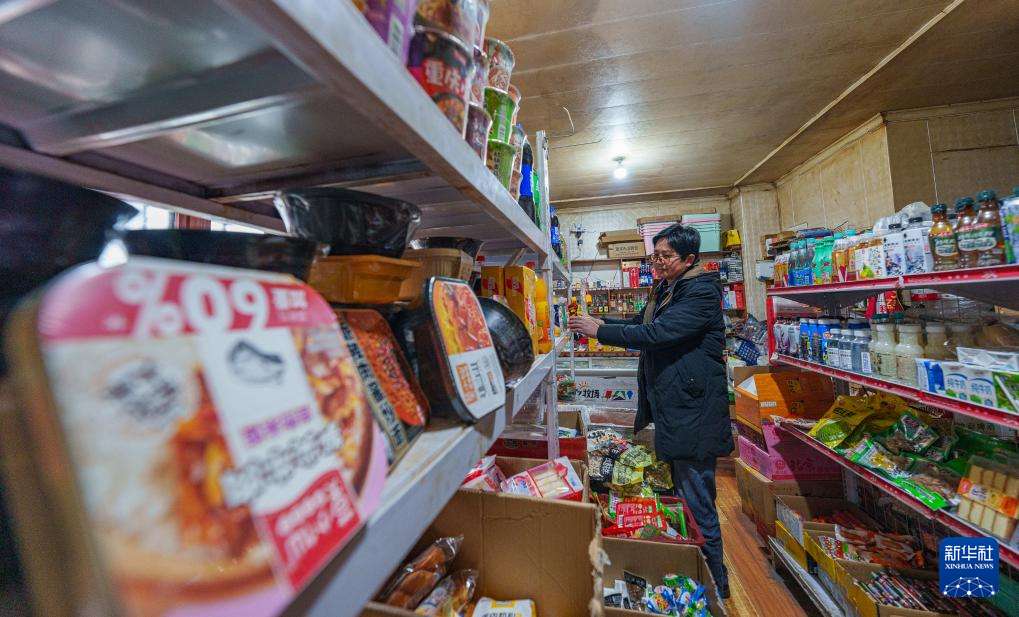2月5日,玉麥鄉(xiāng)一家超市的老板在整理貨架。新華社記者 丁增尼達 攝