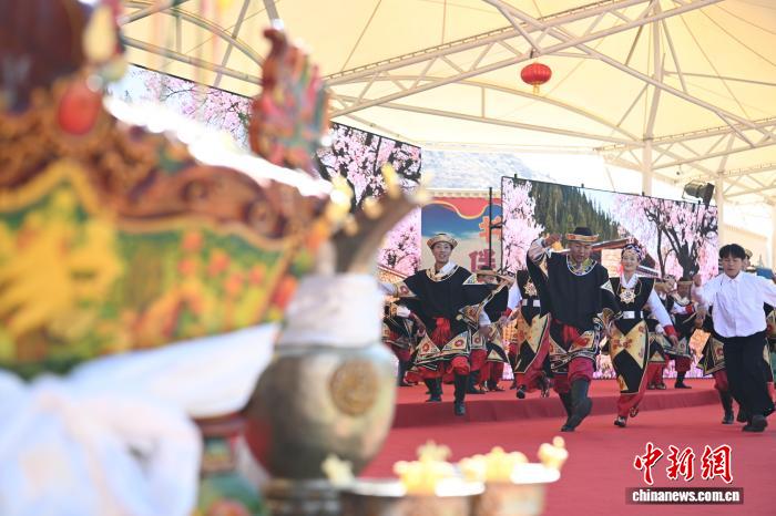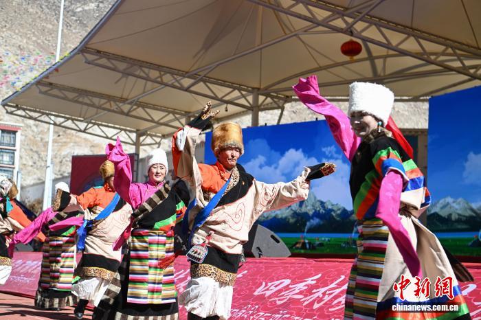 圖為羊湖民間藝術(shù)團(tuán)演員表演舞蹈《嘎拉村的歡笑》。中新社記者 貢嘎來松 攝