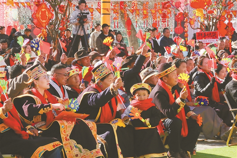 來自羌納鄉(xiāng)崗嘎村的扎西,看完熱鬧喜慶的文藝演出后,領(lǐng)到了一副寓意吉祥的藏文春聯(lián),臉上滿是歡喜。他樂呵呵地說:“今年我們家靠著跑運(yùn)輸、出租機(jī)械,收入差不多有20萬元。不用遠(yuǎn)走他鄉(xiāng),在家門口就能穩(wěn)穩(wěn)當(dāng)當(dāng)掙錢。逢年過節(jié),附近還經(jīng)常舉辦這么有意思的活動,這么好看的節(jié)目,日子越過越紅火、越過越舒心。這一樁樁、一件件,都讓我們真切感受到了黨的關(guān)心和關(guān)懷。”