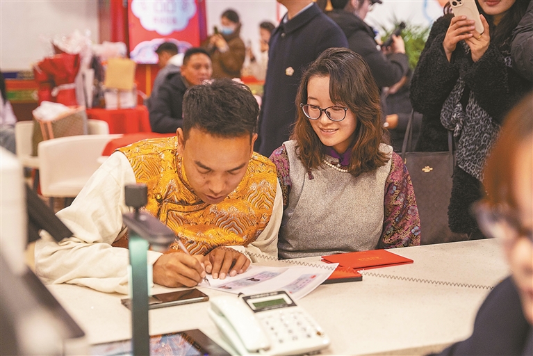 婚姻登記處工作人員介紹,根據往年情況,選擇在情人節(jié)這樣的特殊節(jié)日辦理結婚登記的新人,會比平時多出幾倍。為了應對登記高峰,讓每一對情侶都能順利領證,當天,拉薩市三級政務服務大廳婚姻登記處提前增設了辦理窗口、增派了工作人員,并在現場引導新人有序辦理登記手續(xù)。同時,工作人員還提前將登記所需材料告知前來咨詢的新人,避免大家白跑一趟,必要時也會延長工作時長,全力保障情侶們都能在這個浪漫的日子里,順利完成婚姻登記。