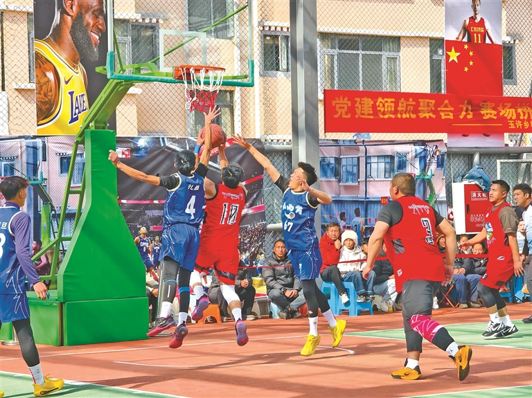 圖為籃球賽比賽現(xiàn)場(chǎng)。