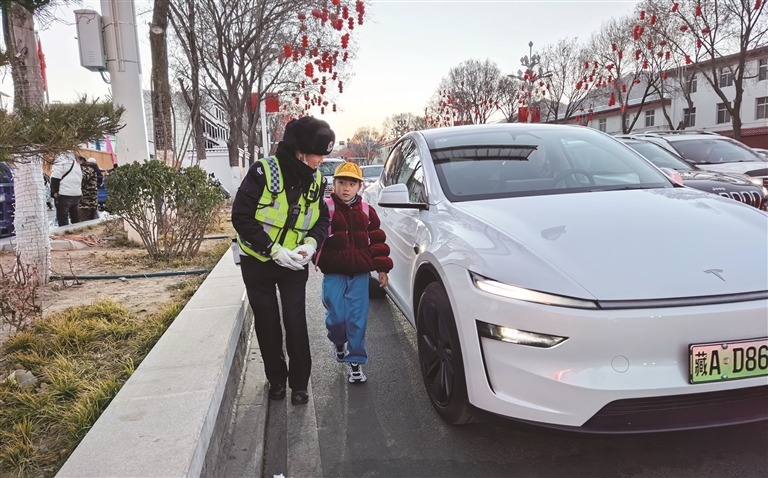 在拉薩市第一小學(xué)江蘇路分校門口,記者看到民警在校園門口斑馬線、十字路口等關(guān)鍵位置定崗定責(zé),配合學(xué)校老師和安保人員形成聯(lián)動合力,引導(dǎo)學(xué)生排隊入校、安全通行。警燈閃爍、哨聲清脆,車流在民警的指揮下快速分流,原本繁忙的路段變得井然有序。家長卓女士告訴記者:“每天上學(xué)、放學(xué)都能看到民警在學(xué)校門口守護,過馬路有人管、停車有秩序,我們接送孩子都特別放心?!?/p>