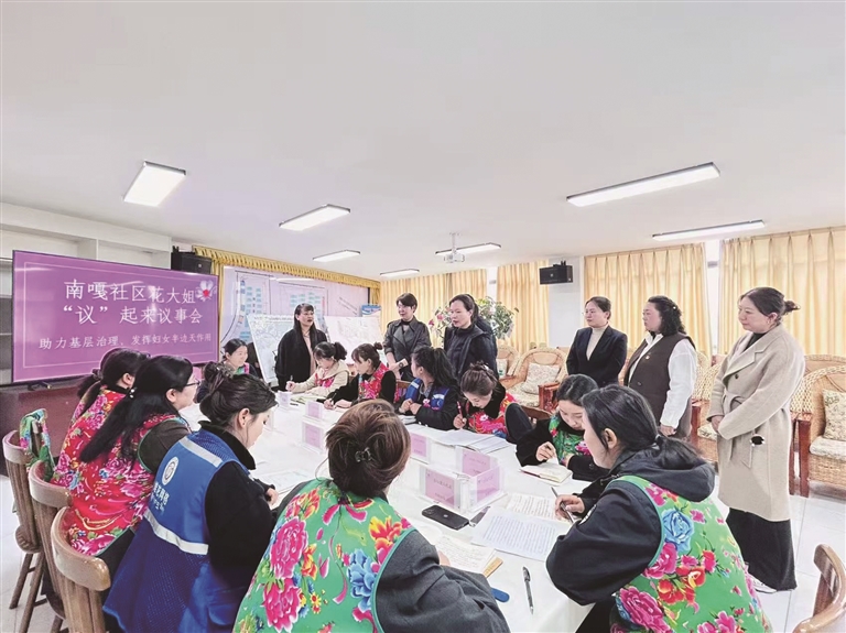 依托區(qū)委“聚龍”黨建品牌,堆龍德慶區(qū)婦聯(lián)培育“龍姐”為民服務(wù)品牌,打造有溫度的服務(wù)名片。張峰瑋表示:“要讓‘龍姐’成為婦女最親近的依靠?!比缃窬S權(quán)幫扶、政策宣講等服務(wù)已實現(xiàn)全域覆蓋,“找龍姐、信龍姐、靠龍姐”成為群眾共識,婦聯(lián)凝聚力持續(xù)增強(qiáng)。同時,聚焦基層治理,堆龍德慶區(qū)婦聯(lián)推動婦女議事會擴(kuò)面增效,阿佳“議”起來議事會、“花大姐”議事會等在各村(社區(qū))蓬勃開展,引導(dǎo)婦女從旁觀者轉(zhuǎn)變?yōu)橹魅宋?,以女性智慧為鄉(xiāng)村振興注入活力。張峰瑋說:“要讓婦女敞開心扉聊家事、議村事,讓心聲有人傾聽、訴求有人回應(yīng)?!?/p>
