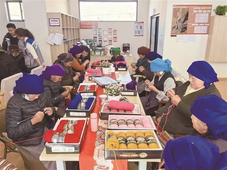 婦女們在做手工編織。圖由拉薩市堆龍德慶區(qū)婦聯(lián)提供