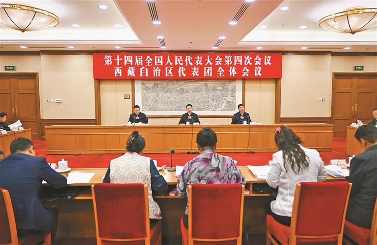 西藏代表團團長、自治區(qū)黨委書記王君正,西藏代表團副團長、自治區(qū)黨委副書記、自治區(qū)人大常委會主任嚴金海參加。西藏代表團副團長、自治區(qū)黨委副書記、自治區(qū)主席嘎瑪澤登主持。