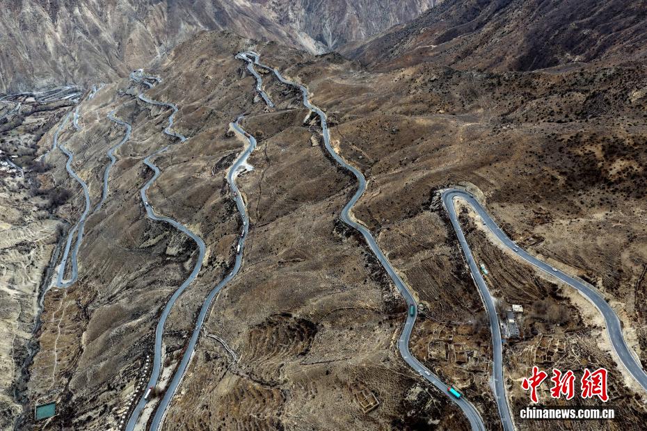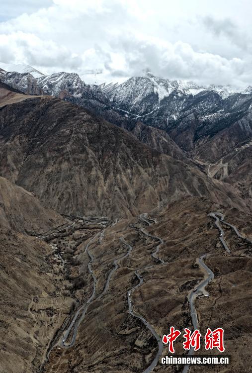 3月25日,川藏線“天路72拐”觀景臺(tái)拍攝的川藏公路。位于西藏昌都市川藏公路線上的“天路72拐”,全長(zhǎng)僅30多公里,高差卻達(dá)1800余米。因坡陡彎急、地勢(shì)險(xiǎn)峻成為川藏公路上極具視覺沖擊力的打卡點(diǎn),吸引過往游客在觀景臺(tái)駐足打卡拍照。(無人機(jī)照片)中新社記者 李林 攝