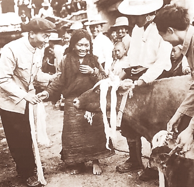 1959年,在中國共產(chǎn)黨領(lǐng)導(dǎo)下,百萬農(nóng)奴終于按人頭分得土地,再也不用向農(nóng)奴主繳納稅賦和差役。封建農(nóng)奴制的支柱轟然倒塌。