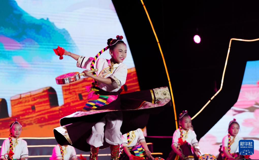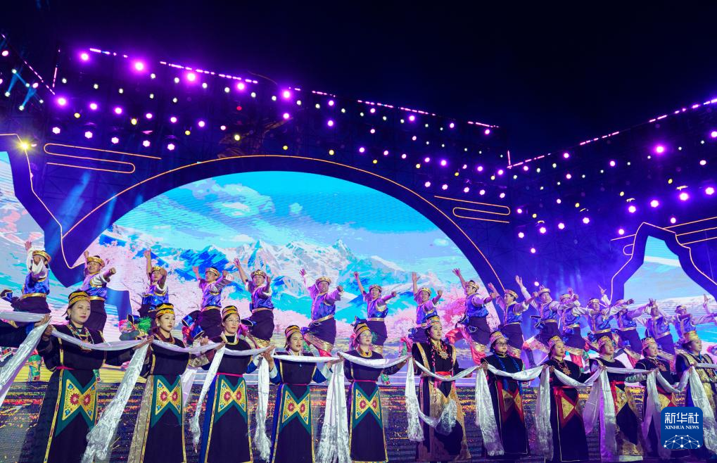 這是4月3日拍攝的林芝第二十三屆桃花旅游文化節(jié)開幕式文藝演出現(xiàn)場。新華社記者 丁增尼達(dá) 攝