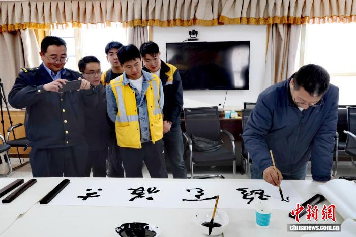 創(chuàng)作過程中,書法家們與現(xiàn)場干部職工親切交流,細致聆聽大家扎根高原、堅守一線的奮斗故事,深入了解站區(qū)工作日常與精神文化需求,針對性地創(chuàng)作專屬書法作品。干部職工們圍在一旁,認真欣賞書法創(chuàng)作過程,細細品味筆墨之間的文化底蘊,紛紛拿出手機記錄精彩瞬間,現(xiàn)場氛圍熱烈而溫馨。一幅幅書法作品,致敬了一線職工堅守高原、保障安全,是對青藏鐵路發(fā)展成就的贊揚,讓干部職工在翰墨香氣中感受組織關(guān)懷,汲取精神力量。