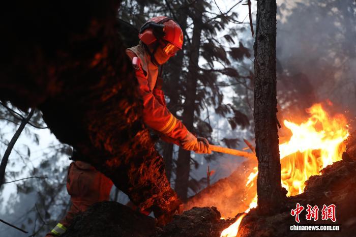 圖為消防救援人員滅火作戰(zhàn)。吳蕾蕾攝