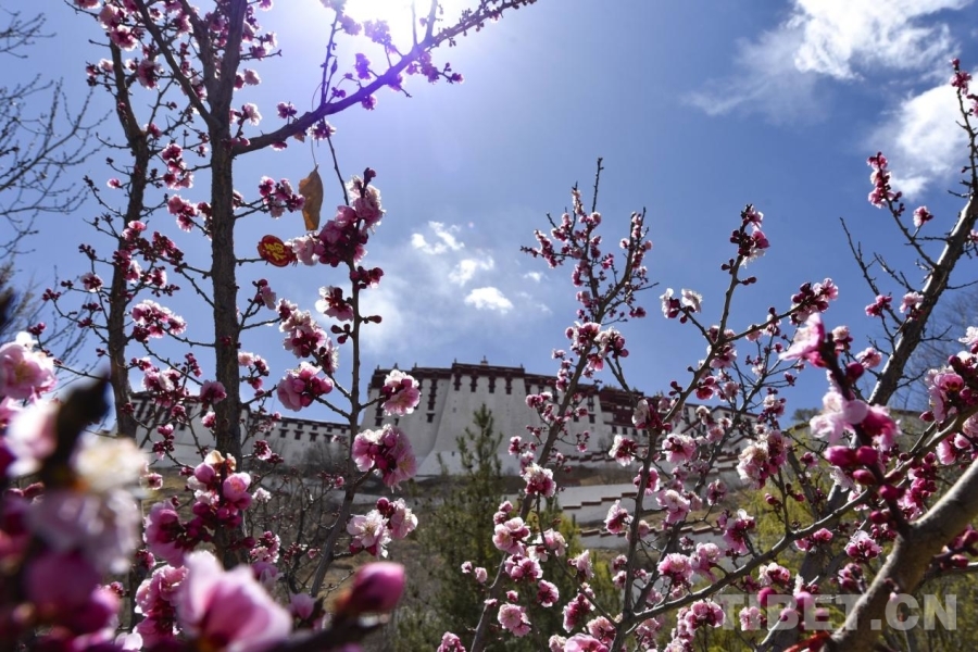 4月1日,西藏拉薩慈覺林村盛開的桃花與布達拉宮交相輝映。西藏拉薩河南岸的慈覺林村古桃樹迎來盛花期,與布達拉宮構成春日美麗畫卷。