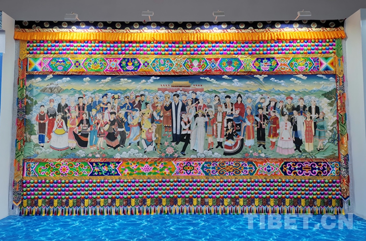 圖為大型唐卡《民族團(tuán)結(jié)一家親 全家福》 攝影:王茜