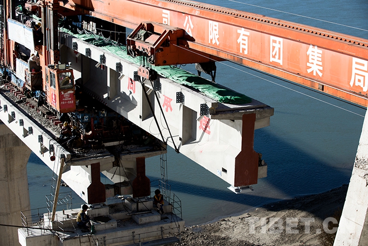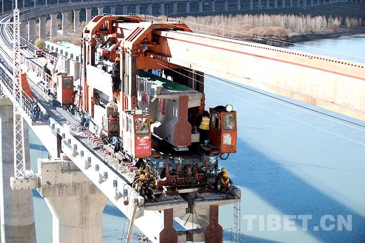 中國(guó)西藏網(wǎng)訊 12月1日,伴隨著架橋機(jī)的轟鳴聲,一排排工程軌排平穩(wěn)有序地落在橋梁上,由中鐵十一局承建的川藏鐵路拉薩至林芝段順利鋪架至西藏自治區(qū)山南市桑日縣絨鄉(xiāng)雅魯藏布江特大橋。這座特大橋的鋪通是川藏鐵路拉薩至林芝段第二次跨越雅魯藏布江,鋪通后距離桑日車(chē)站將不足2公里,為鋪架至桑日車(chē)站打下最后的堡壘。
