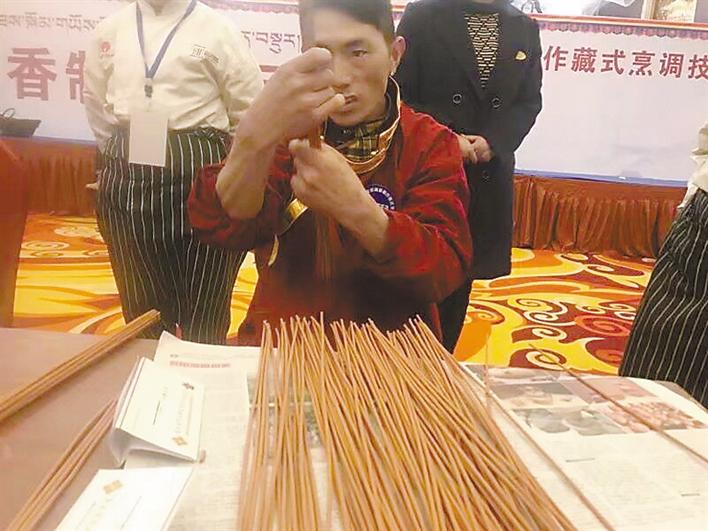 巴爾曲德寺藏香原材料取自朗縣獨(dú)有的松木為主料,再以檀香、麝香、藏紅花、冰片、丁香等30多種珍貴純天然藥材按適當(dāng)比例配合主料揉搓而成,加工工序包括選料、磨料、配料、攪拌、揉和、加工、晾曬、包裝等,全部由人工完成。制作過程中,磨料和晾曬這兩道工序尤為繁瑣復(fù)雜,也是藏香加工當(dāng)中最為重要的環(huán)節(jié)。