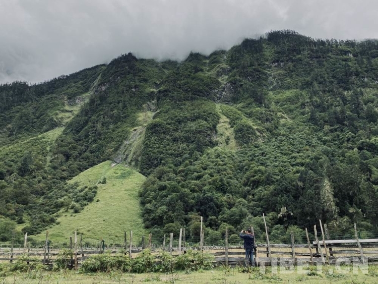 森林邊有一片大大的牧場,我靜靜地躺下來。牧場遠(yuǎn)處有牦牛在吃草,聽村民講這是野牦牛,因為這里絕少有人來,它們對人也沒有恐懼。