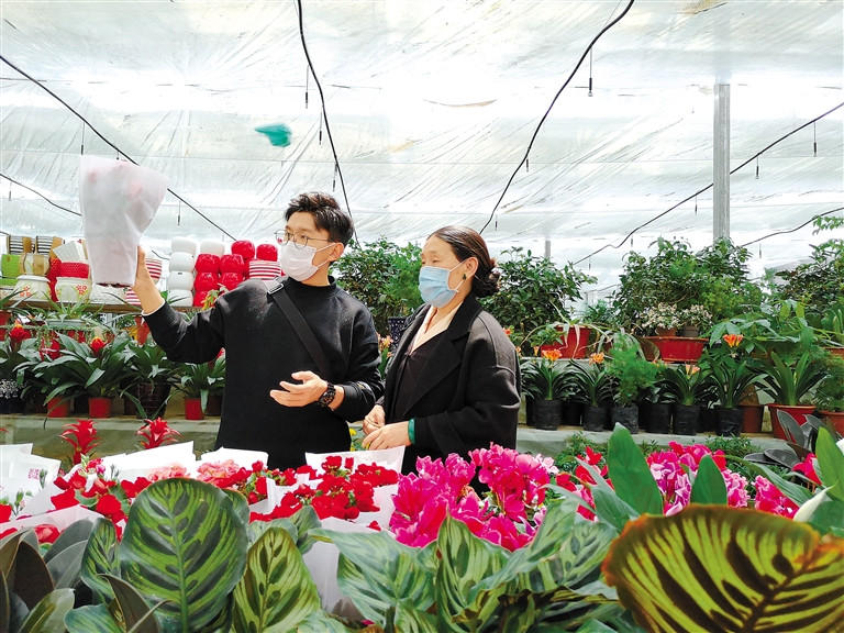 市民在拉薩智昭凈土產(chǎn)業(yè)園購買鮮花。記者 周輝 攝