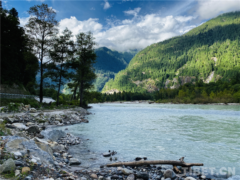駕車行駛在新建的219國道察隅段,路沿著清澈的貢日嘎布曲河流一路延伸,公路兩旁茂密的樹木,仿佛行進(jìn)在天然氧吧里,每轉(zhuǎn)過一個(gè)彎,眼前的景色都會(huì)給你帶來驚喜。沿途群山有許多大大小小的瀑布,如大家熟知的畢達(dá)瀑布、布宗瀑布等等。旺堆師傅告訴我,十月后,群山穿上了白衣,樹木染成了秋黃,那個(gè)景色才叫極致。