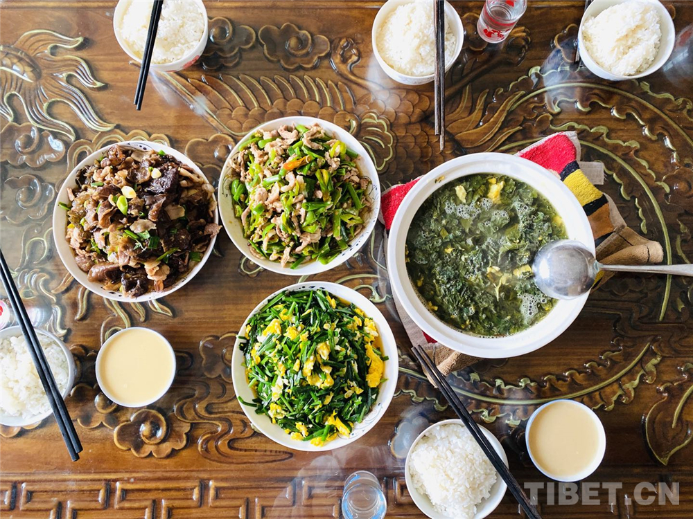 次增做得一手好菜,木耳青椒炒肉、韭菜炒雞蛋,還有蕎麥葉煮蛋湯,家常菜讓人感到非常親切和感動(dòng)。次增對(duì)我們說:“開展生態(tài)宜居示范村建設(shè)后,整個(gè)村變化特別大,以前村里的土路高低不平,現(xiàn)在道路平整,路也寬了,給我們帶來了很大的幸福,不是光我一家,我們整個(gè)村子家家戶戶都覺得非常滿意?!?/p>