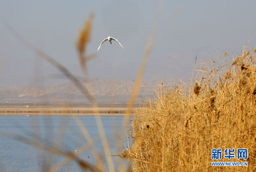 10月28日,一只水鳥飛過可魯克湖。新華社記者 央秀達(dá)珍 攝