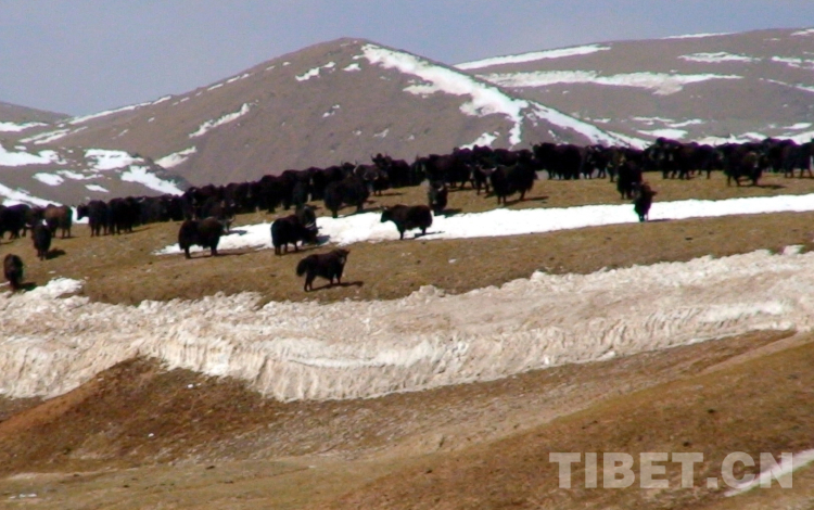 這是生活在藏北無(wú)人區(qū)雪山上的國(guó)家一級(jí)保護(hù)動(dòng)物野牦牛(唐召明2008年攝)