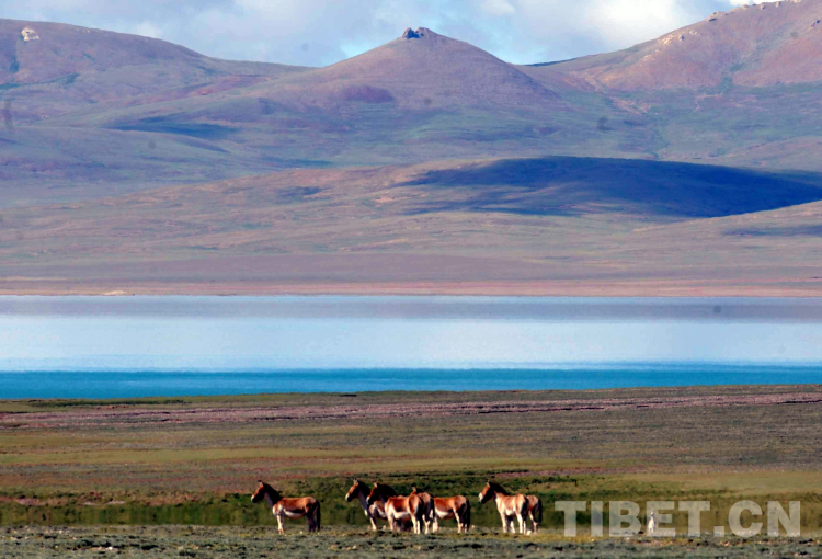 這是在藏北無(wú)人區(qū)一湖泊前悠閑生活的國(guó)家一級(jí)保護(hù)動(dòng)物藏野驢(唐召明2009年攝)