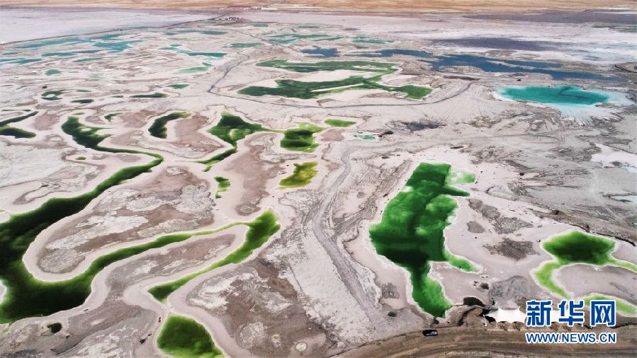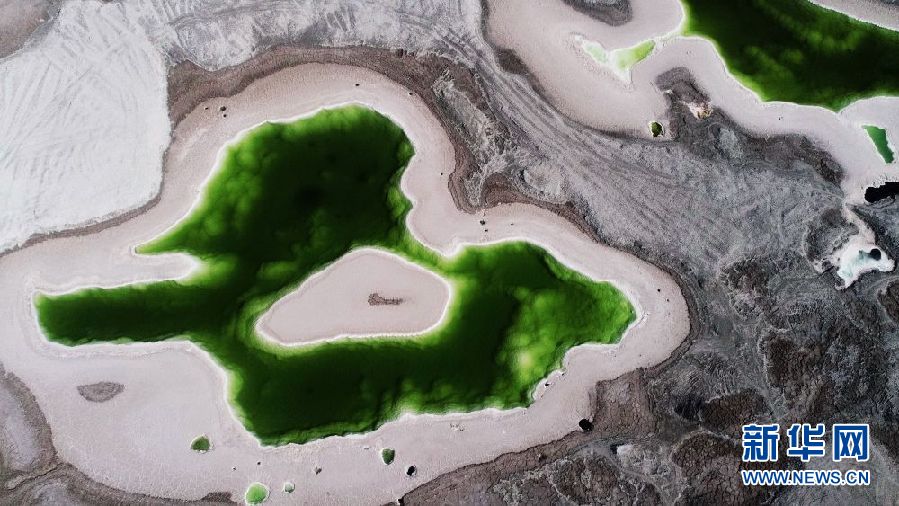 翡翠湖位于青海省海西蒙古族藏族自治州,由于湖底深淺不一、所含礦物質濃度不同,湖水呈現(xiàn)不同深度的綠色,宛若鑲嵌在戈壁上的“綠寶石”。