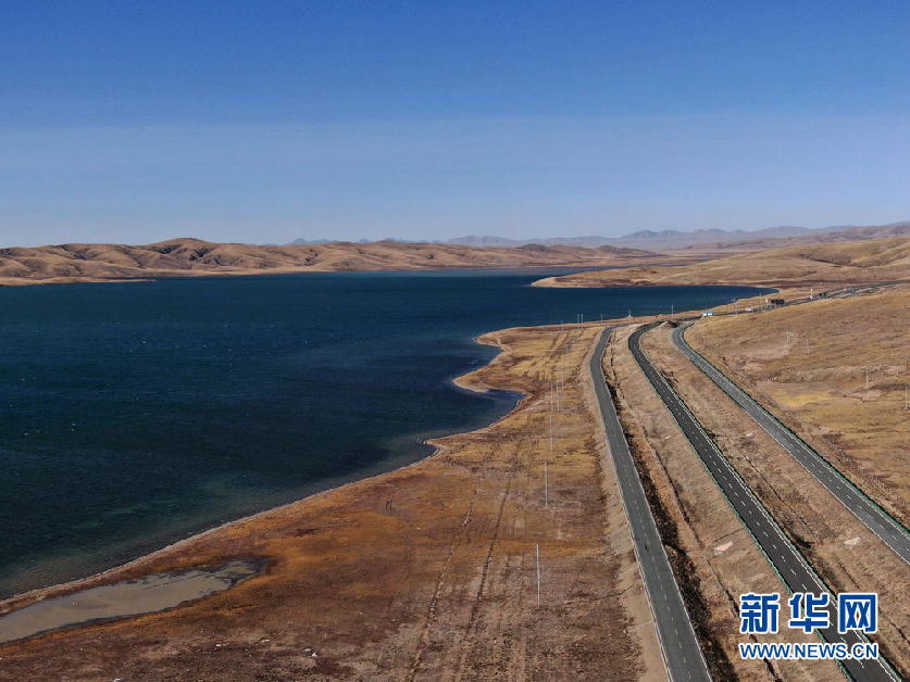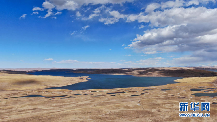 這是10月30日在青海省果洛藏族自治州瑪多縣境內(nèi)拍攝的一處湖泊(無人機照片)。新華社記者 張龍 攝