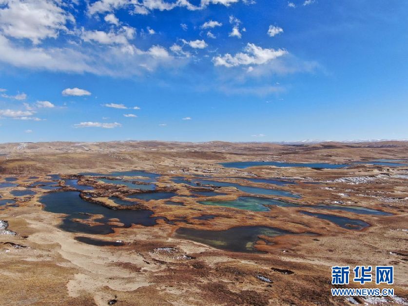 這是10月30日在青海省果洛藏族自治州瑪多縣境內(nèi)拍攝的星星海一角(無人機照片)。新華社記者 張龍 攝