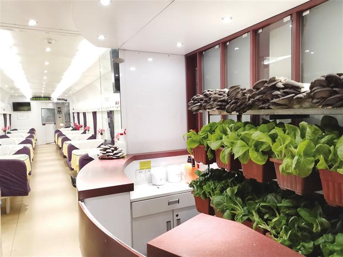 車窗外草原蒼茫,雪山巍峨,車廂里綠意盎然,一盆盆新鮮蔬菜隨著列車,一路西行,自由生長,旅客們吃著原汁原味的“泥土菜”,一路歡歌,一路美景到拉薩。(圖由青藏鐵路集團(tuán)有限公司提供)