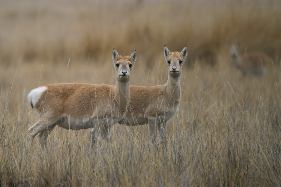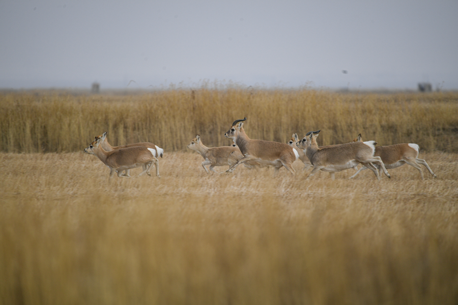 11月20日,一群普氏原羚在青海湖普氏原羚特護(hù)區(qū)內(nèi)活動(dòng)。新華網(wǎng) 潘彬彬 攝