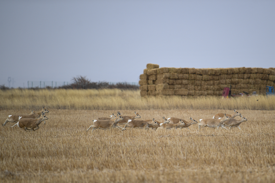一群普氏原羚在特護(hù)區(qū)內(nèi)奔跑、跳躍。(11月20日攝)新華網(wǎng) 潘彬彬攝