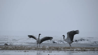 剛察縣青海湖畔的黑頸鶴。新華網(wǎng) 潘彬彬 攝