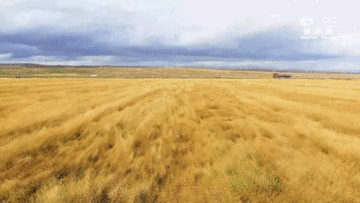 秋季的剛察,麥田成熟,草原泛黃。新華網(wǎng) 潘彬彬 攝