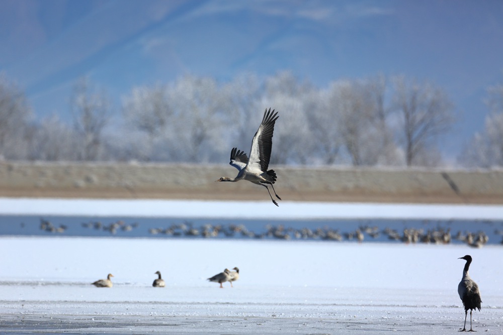 近日,西藏拉薩市林周縣迎來降雪,位于林周縣境內(nèi)的黑頸鶴保護區(qū)變成了粉妝玉砌的世界,黑頸鶴與白皚皚的大雪相互點綴,構(gòu)建出一幅自然和諧的冬日畫卷。[詳細] -