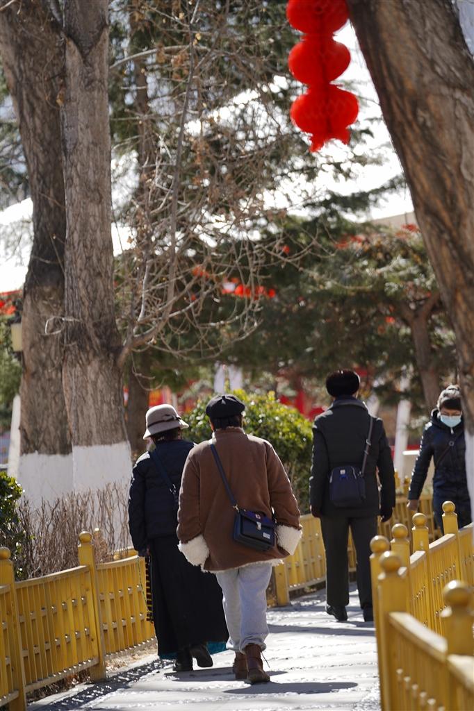 “我們住在頓珠金融城,最近氣溫回暖,我和老伴每天都會(huì)早起到附近的公園散步。成群的候鳥(niǎo)與湛藍(lán)的天空,搭配遠(yuǎn)處的雪景,很是養(yǎng)眼?!泵赚旑D珠帶著笑意說(shuō)。
