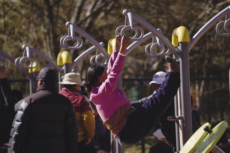 漫步公園,到處都是人們晨練的身影。太極、柔力球、廣場(chǎng)舞,清晨的宗角祿康公園十分熱鬧。在公園一角,還有人在跳鍋莊舞,他們隨著音樂(lè),一會(huì)兒扭胯、一會(huì)兒踢腿、一會(huì)兒擺手……個(gè)個(gè)精神飽滿。