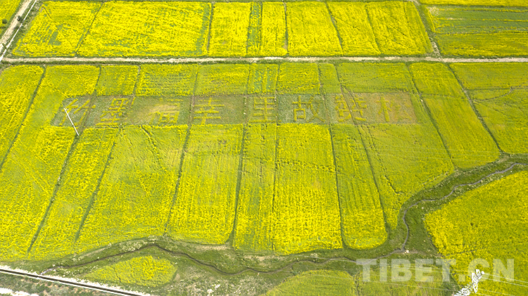 值得一提的是,在扎西崗鄉(xiāng)主會(huì)場,當(dāng)?shù)貙⒒牡刂匦麻_墾,安排種植了油菜花大地景觀。不同品種、不同顏色的油菜花海為背景的種植,從空中俯瞰形成了“喜迎二十大”“松贊故里 幸福墨竹”字樣和松贊干布、文成公主、哈達(dá)、愛心等圖樣,表達(dá)當(dāng)?shù)厝罕娤灿h的二十大的美好祝福。