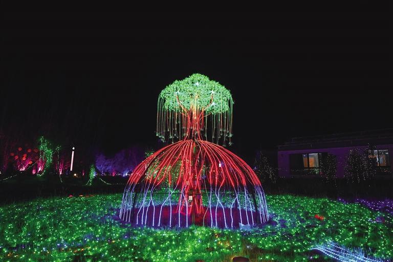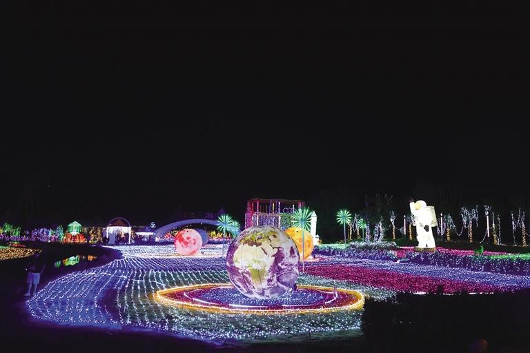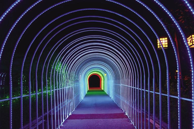 象雄美朵首屆國潮光影秀分為星際迷航、迷霧森林、遇見·螢火之光、激情北極光、時(shí)光隧道五個(gè)板塊。隨著彩燈亮起,星辰、太空人、火箭、綠森林、花海、孔雀等景觀清晰地展現(xiàn)在大家面前,通過藝術(shù)與科技巧妙地結(jié)合,立體呈現(xiàn)各種自然場景。